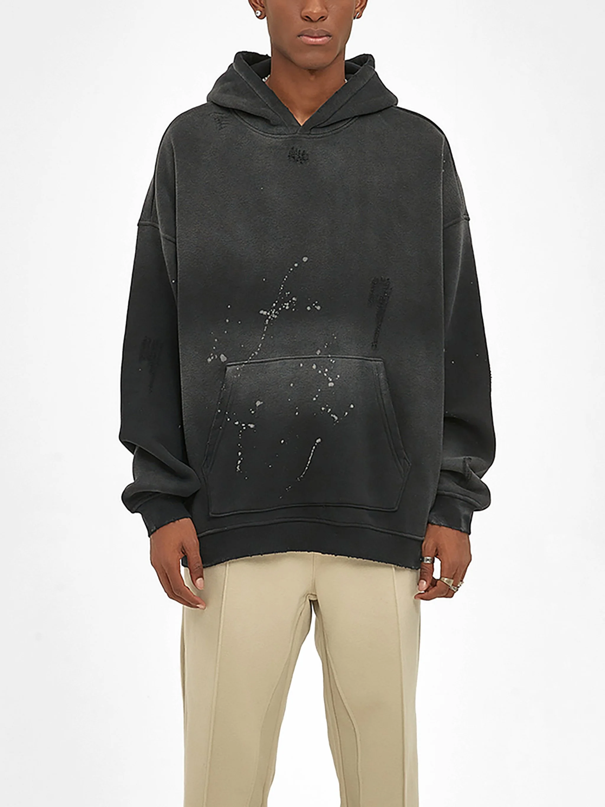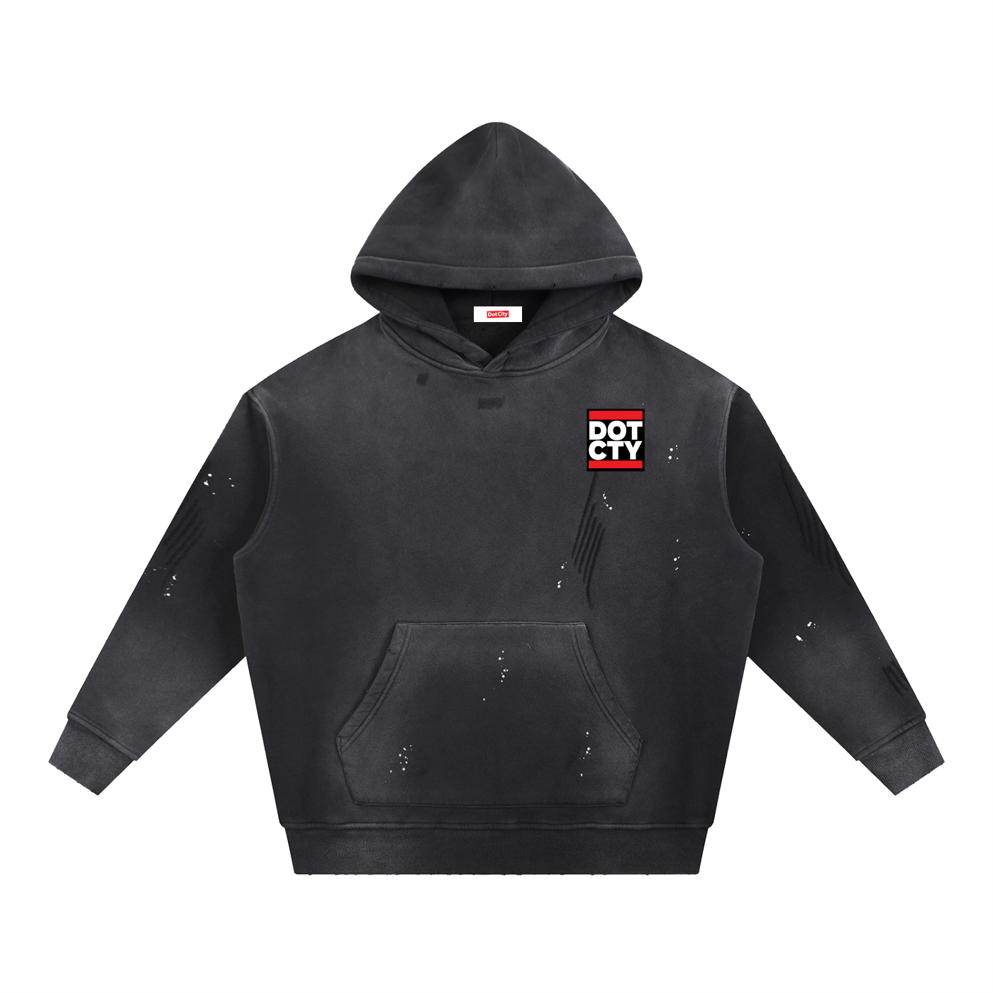 Dot City Vintage Washed Frayed Fleece Hoodie